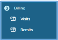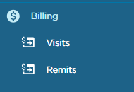 Claims: Claims, or the invoiced amount being sent to the payer based on member's visits and your contracted fee schedule with the payer can be found in the "Visits" section, under Billing within the left navigation menu. Claims are only created on the 5th of each month, which is why it is important to have all data cleaned up by the 4th.