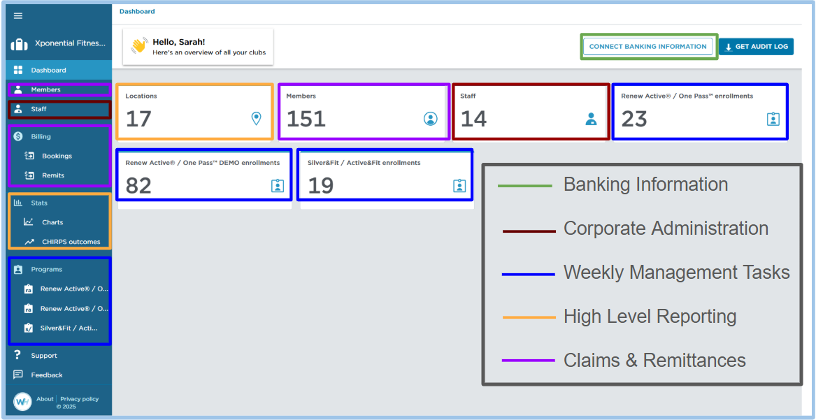 The Welld Admin Dashboard is the your backend to Welld to monitor usage and complete monthly tasks to ensure best payment for class utilization.